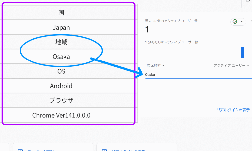Googleアナリティクスでは、リアルタイムでユーザーの来訪を知ることができます。