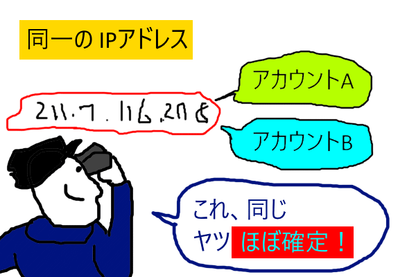 同じIPアドレスから短時間の間に投稿されたのなら、垢Aと垢Bが同一人物だと推定されるかもしれません。