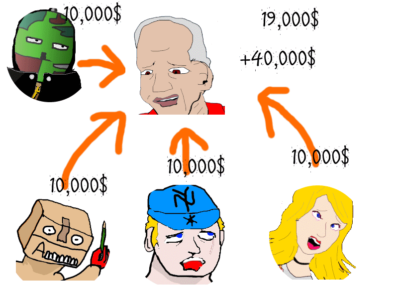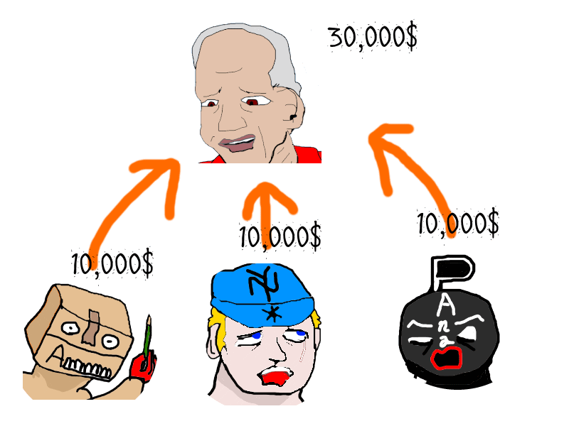 3人から10,000$ずつ集めたとしましょう。